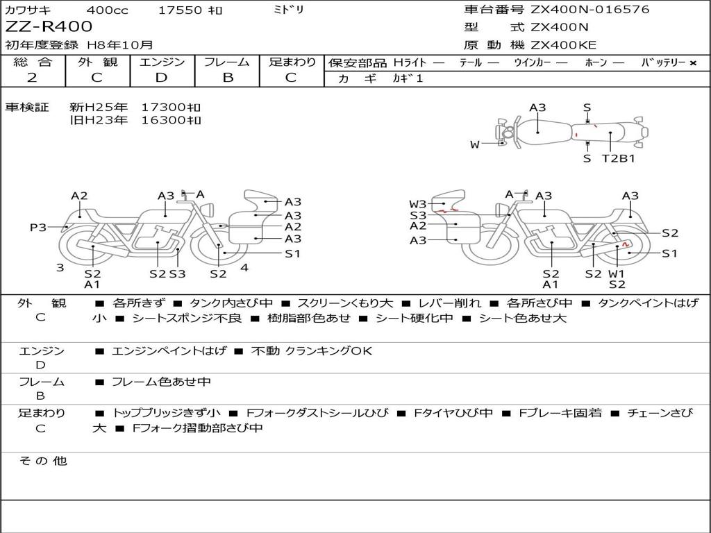 | Номер рамы / VIN | ZX400N-016576 |