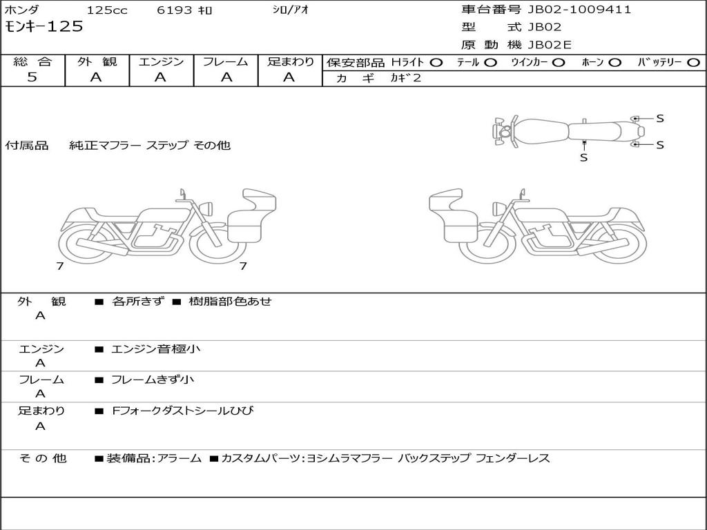| Номер рамы / VIN | JB02-1009411 |