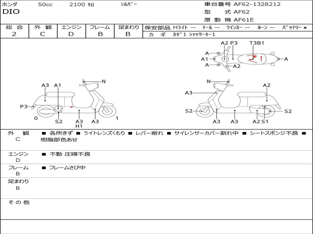| Номер рамы / VIN | AF62-1328212 |
