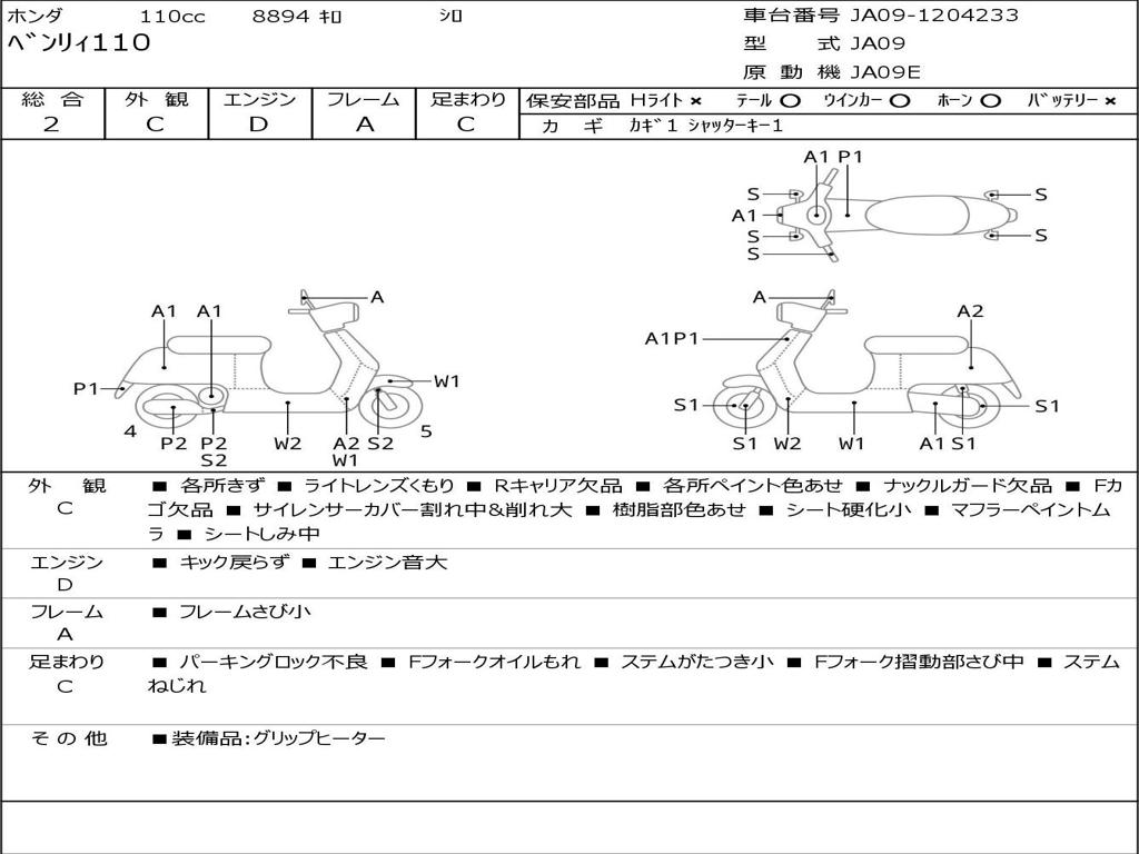 | Номер рамы / VIN | JA09-1204233 |