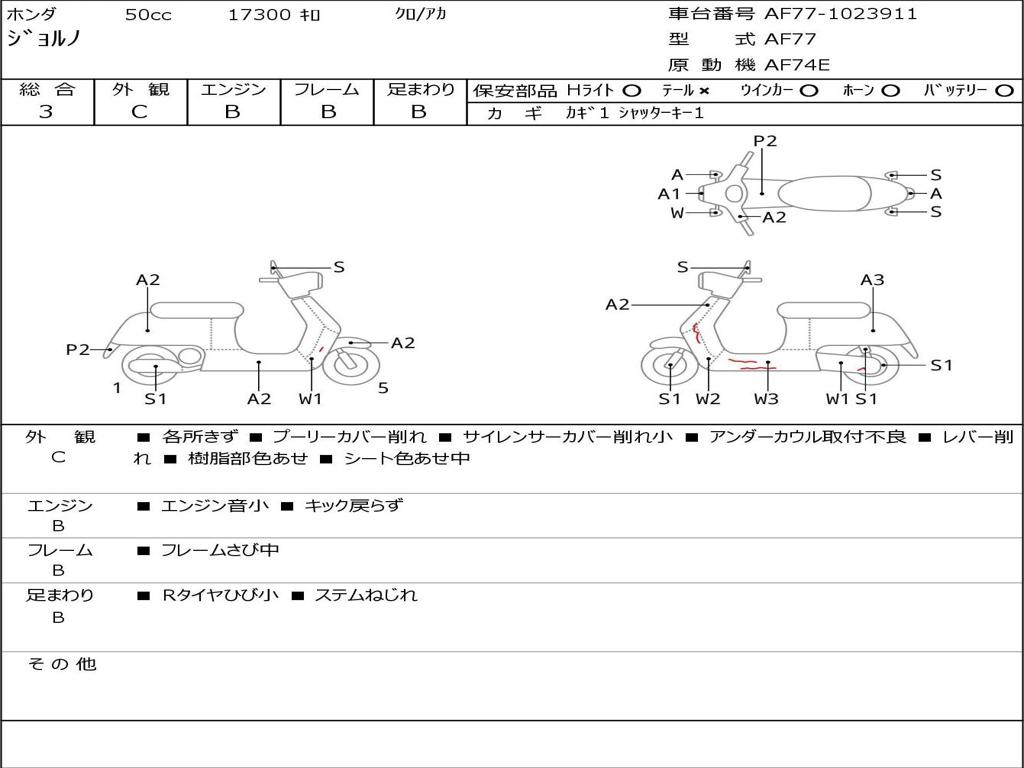 | Номер рамы / VIN | AF77-1023911 |