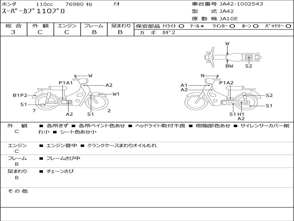 | Номер рамы / VIN | JA42-1002543 |