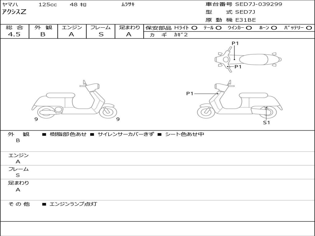 | Номер рамы / VIN | SED7J-039299 |