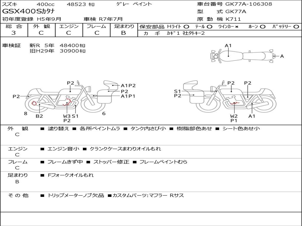 | Номер рамы / VIN | GK77A-106308 |