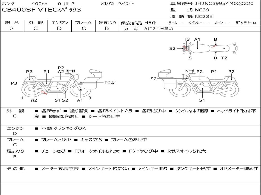| Номер рамы / VIN | JH2NC39954M020220 |