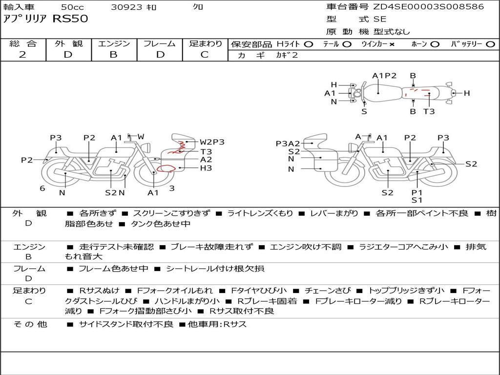 | Номер рамы / VIN | ZD4SE00003S008586 |