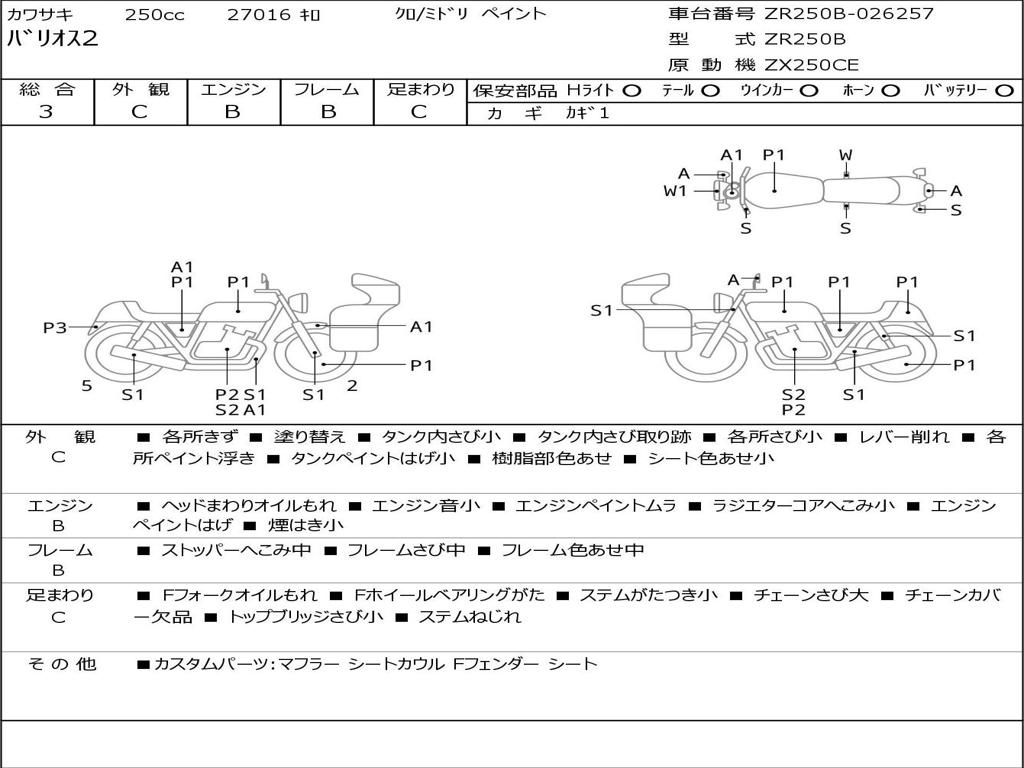 | Номер рамы / VIN | ZR250B-026257 |