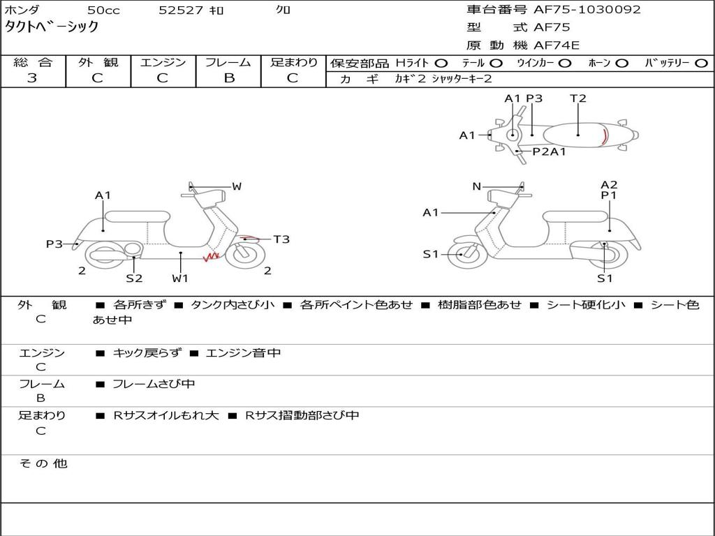 | Номер рамы / VIN | AF75-1030092 |
