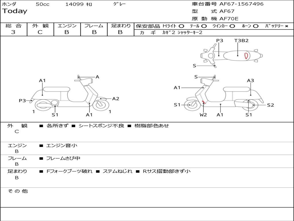 | Номер рамы / VIN | AF67-1567496 |