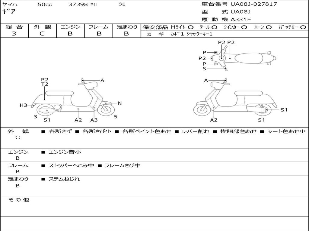 | Номер рамы / VIN | UA08J-027817 |