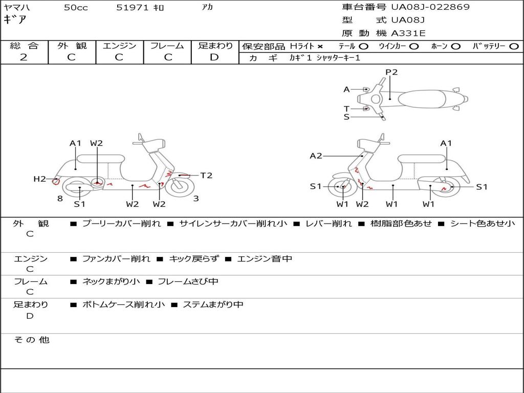 | Номер рамы / VIN | UA08J-022869 |