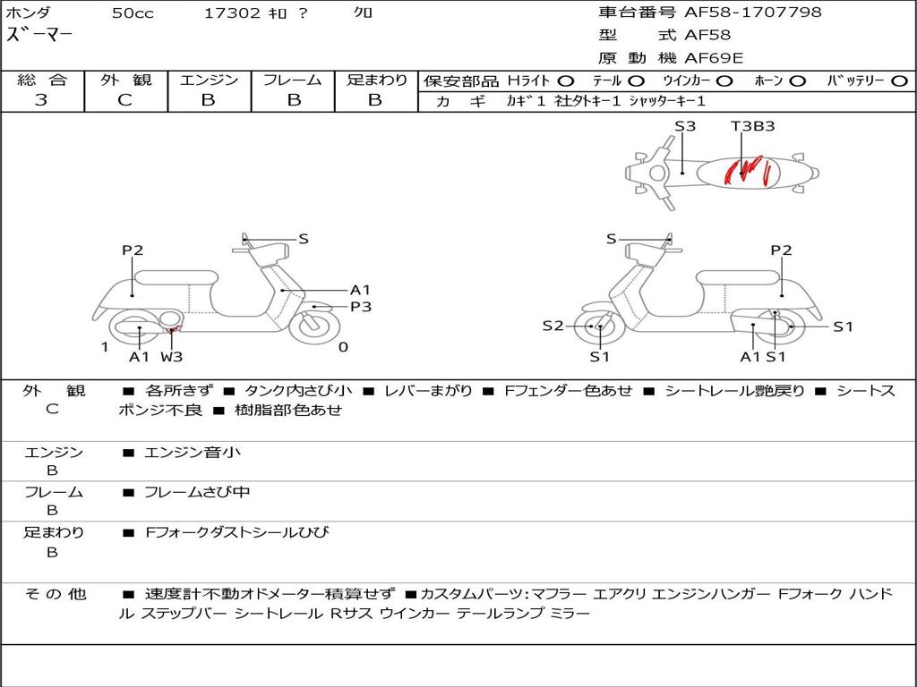 | Номер рамы / VIN | AF58-1707798 |
