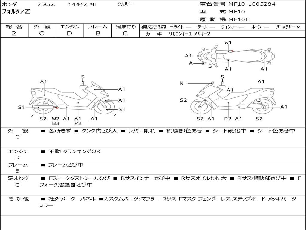 | Номер рамы / VIN | MF10-1005284 |
