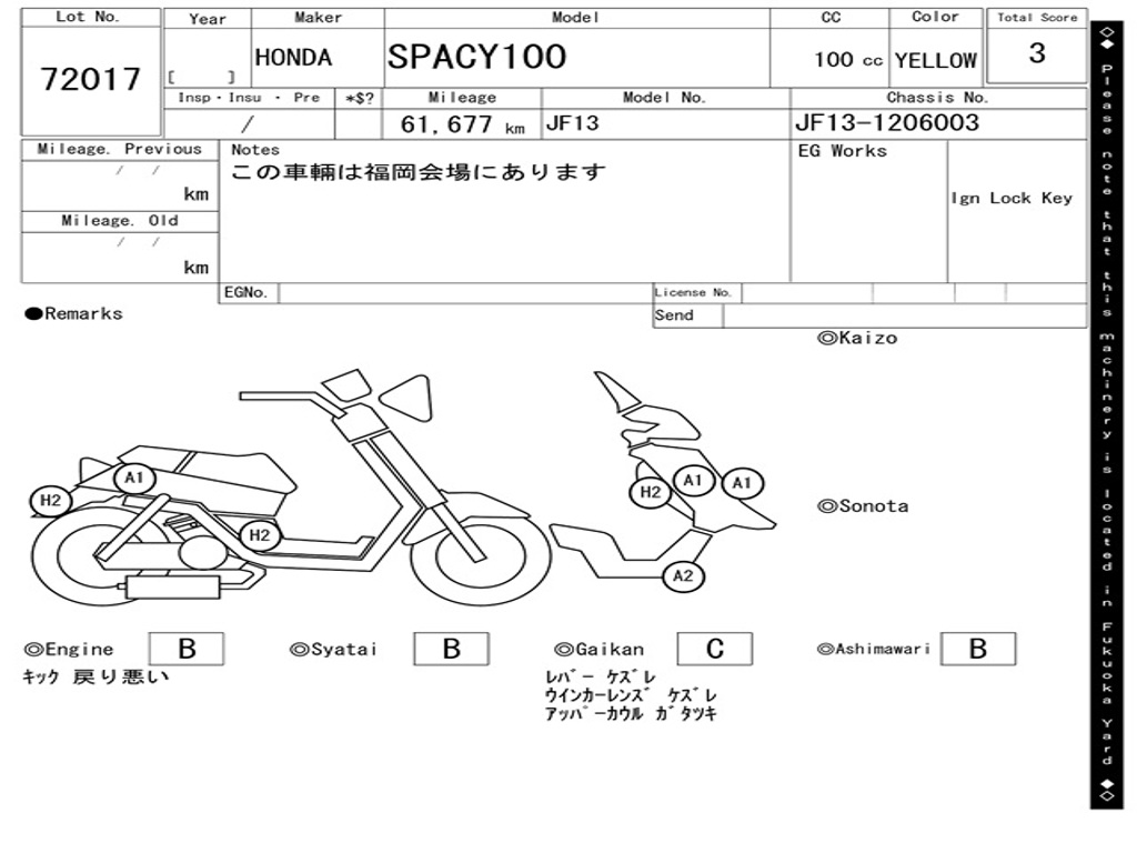 | Номер рамы / VIN | JF13-1206003 |
