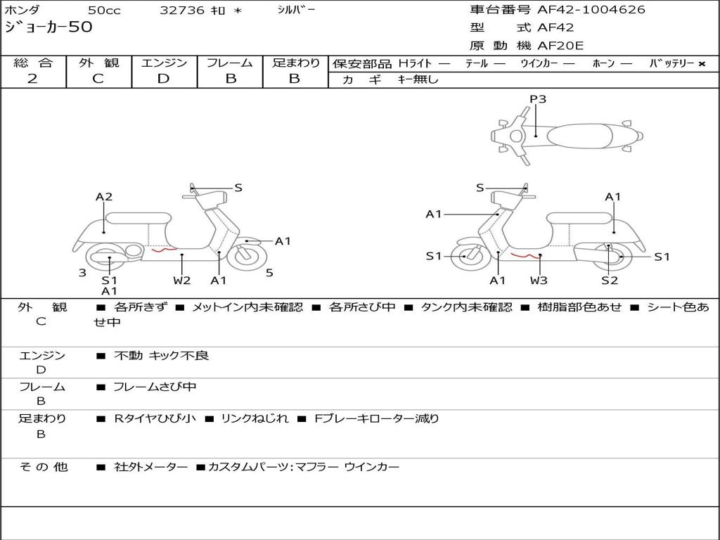 | Номер рамы / VIN | AF42-1004626 |
