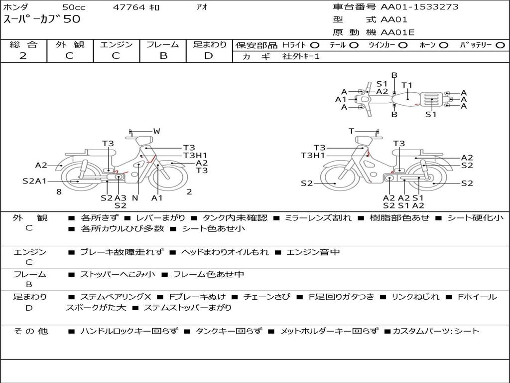 | Номер рамы / VIN | AA01-1533273 |