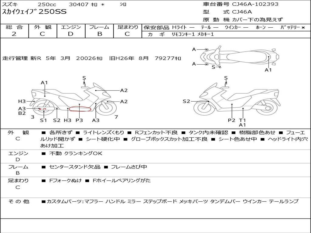 | Номер рамы / VIN | CJ46A-102393 |