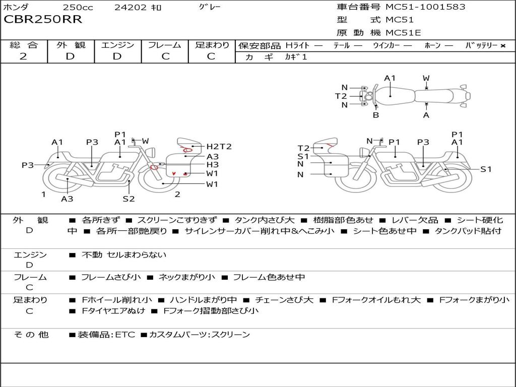 | Номер рамы / VIN | MC51-1001583 |