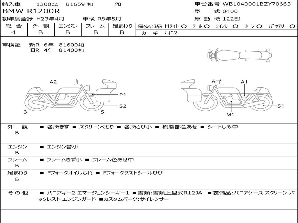 | Номер рамы / VIN | WB1040001BZY70663 |