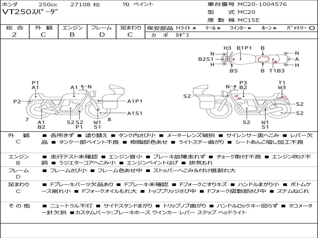 | Номер рамы / VIN | MC20-1004576 |