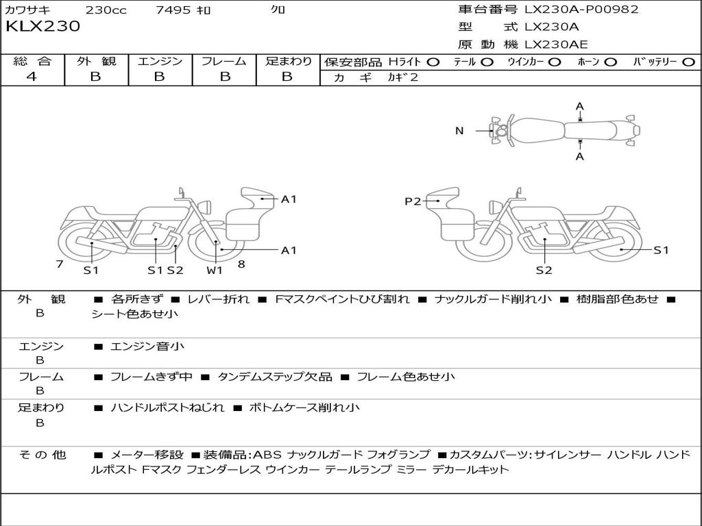 | Номер рамы / VIN | LX230A-P00982 |