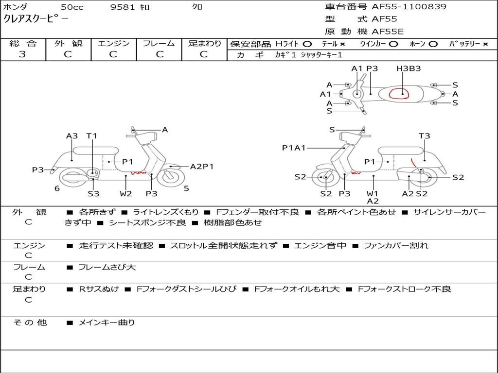 | Номер рамы / VIN | AF55-1100839 |