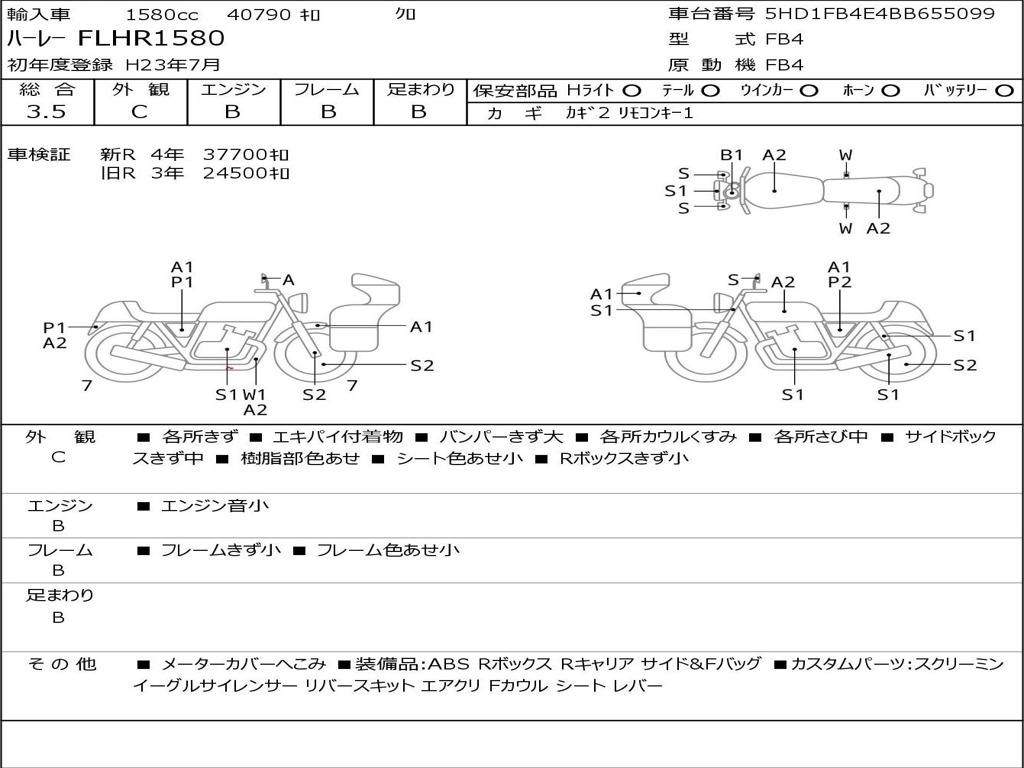 | Номер рамы / VIN | 5HD1FB4E4BB655099 |