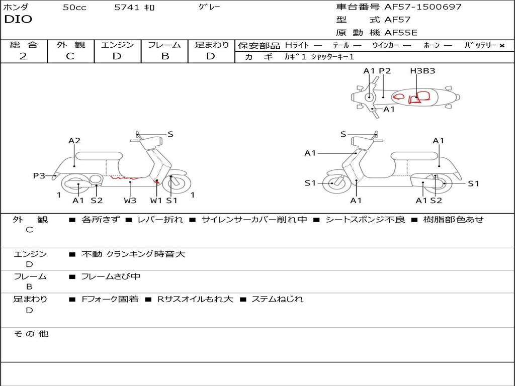 | Номер рамы / VIN | AF57-1500697 |