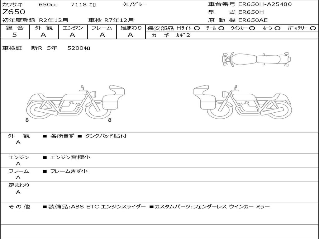 | Номер рамы / VIN | ER650H-A25480 |