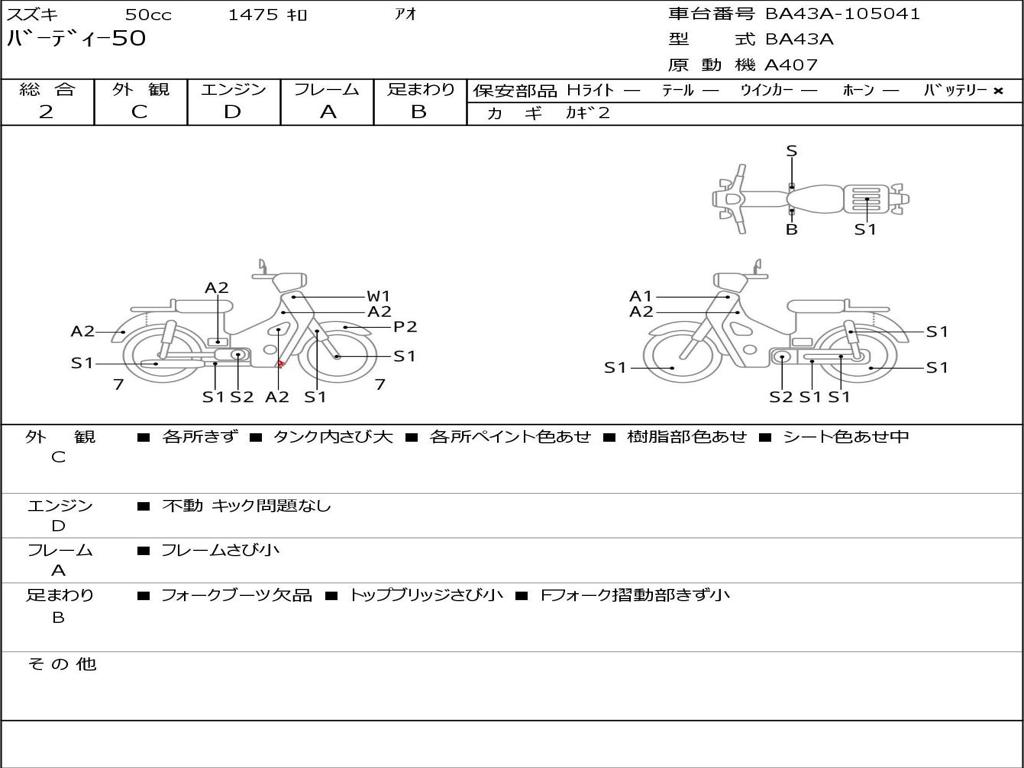 | Номер рамы / VIN | BA43A-105041 |