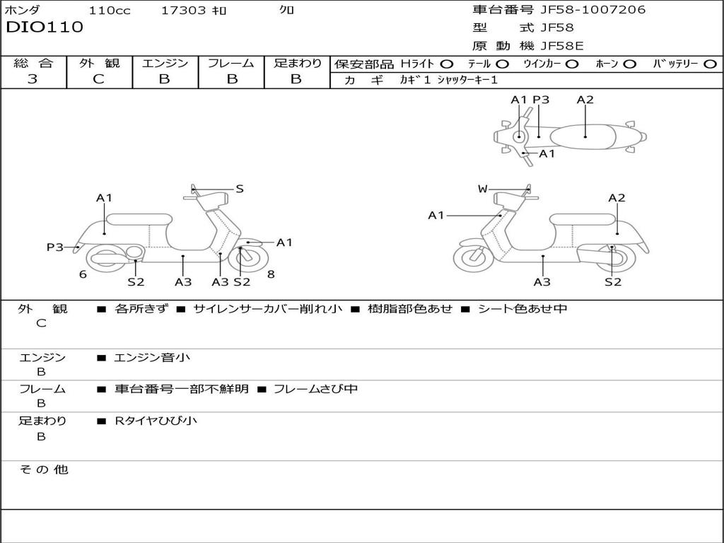 | Номер рамы / VIN | JF58-1007206 |