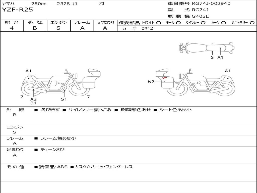 | Номер рамы / VIN | RG74J-002940 |