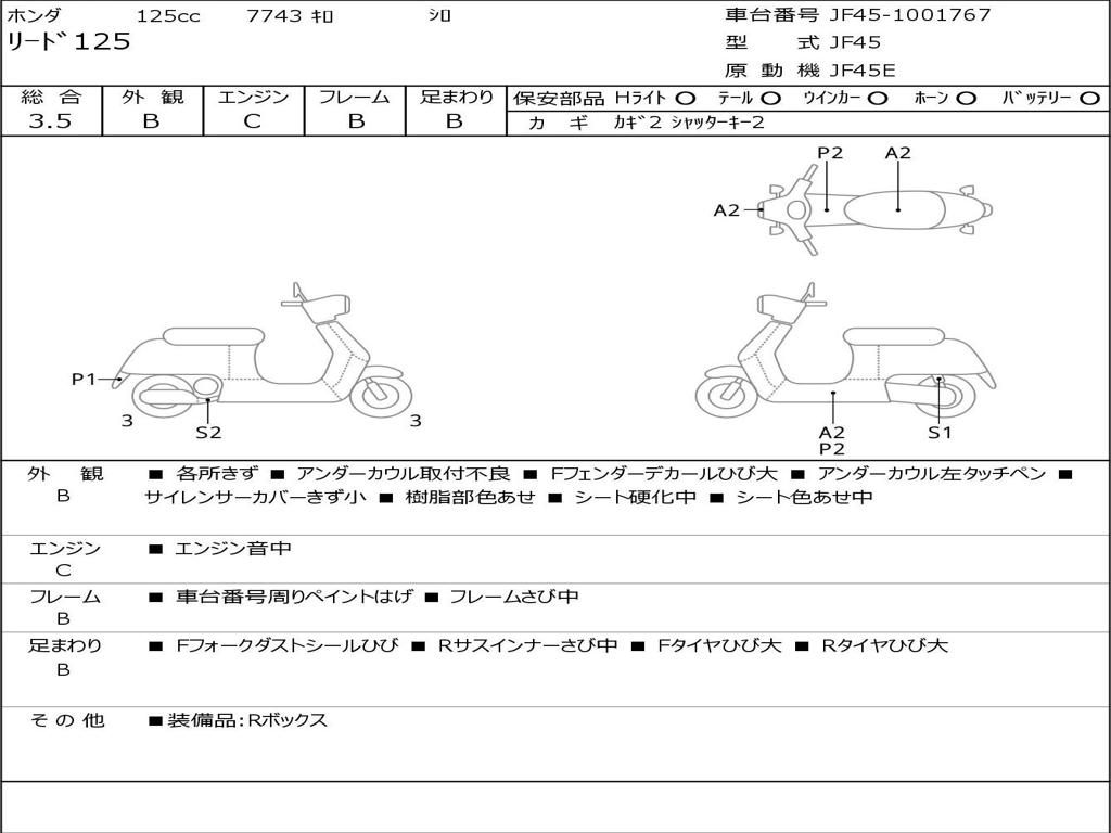 | Номер рамы / VIN | JF45-1001767 |