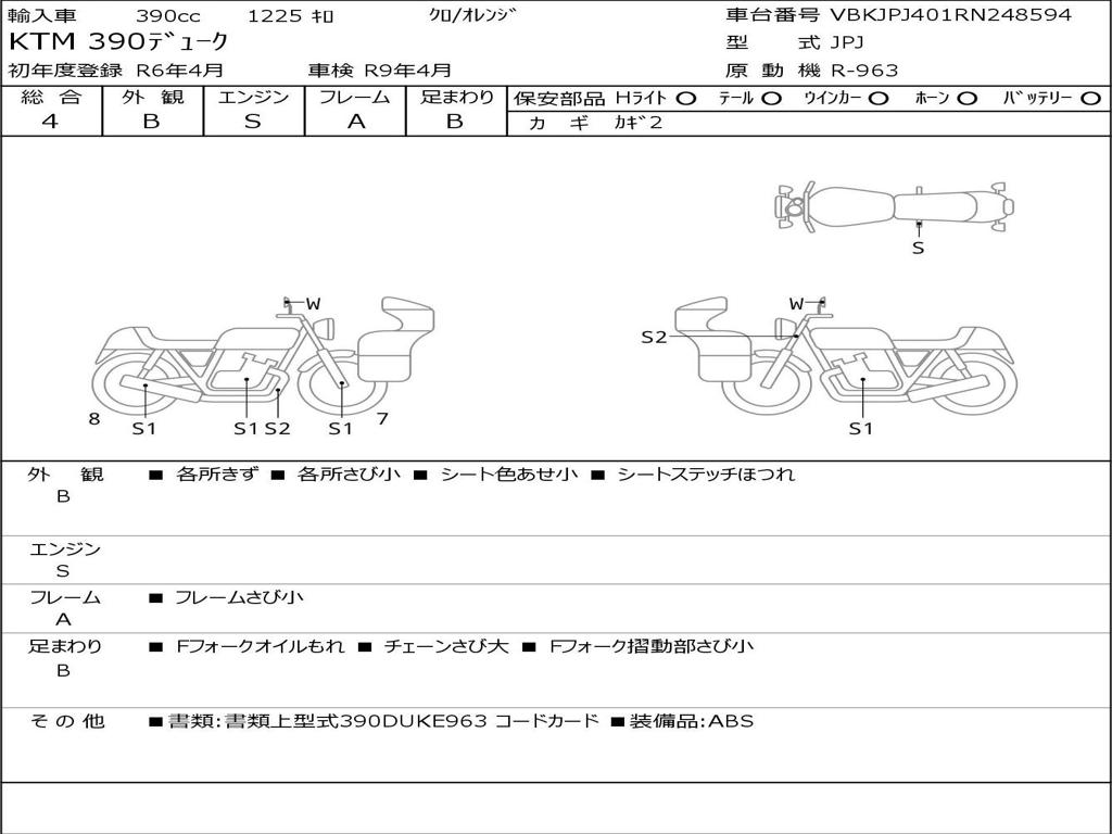 | Номер рамы / VIN | VBKJPJ401RN248594 |