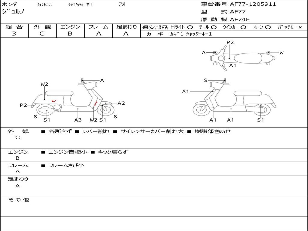 | Номер рамы / VIN | AF77-1205911 |