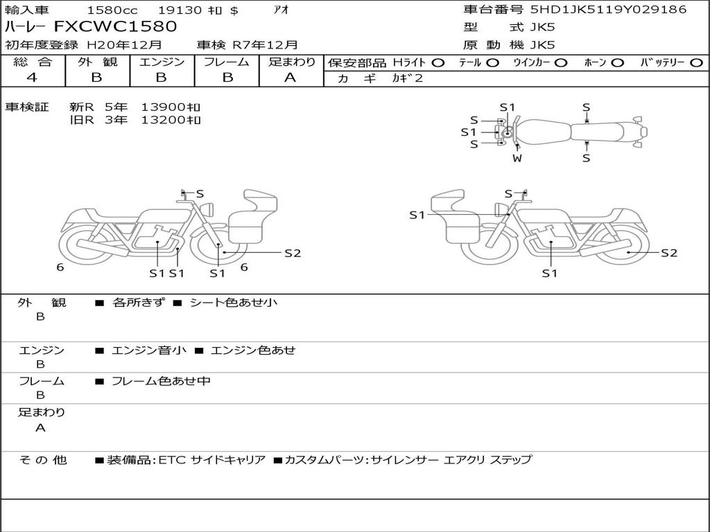 | Номер рамы / VIN | 5HD1JK5119Y029186 |