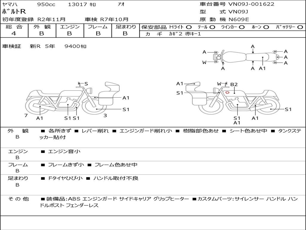 | Номер рамы / VIN | VN09J-001622 |