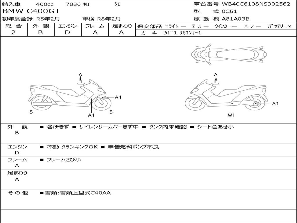 | Номер рамы / VIN | WB40C6108NS902562 |