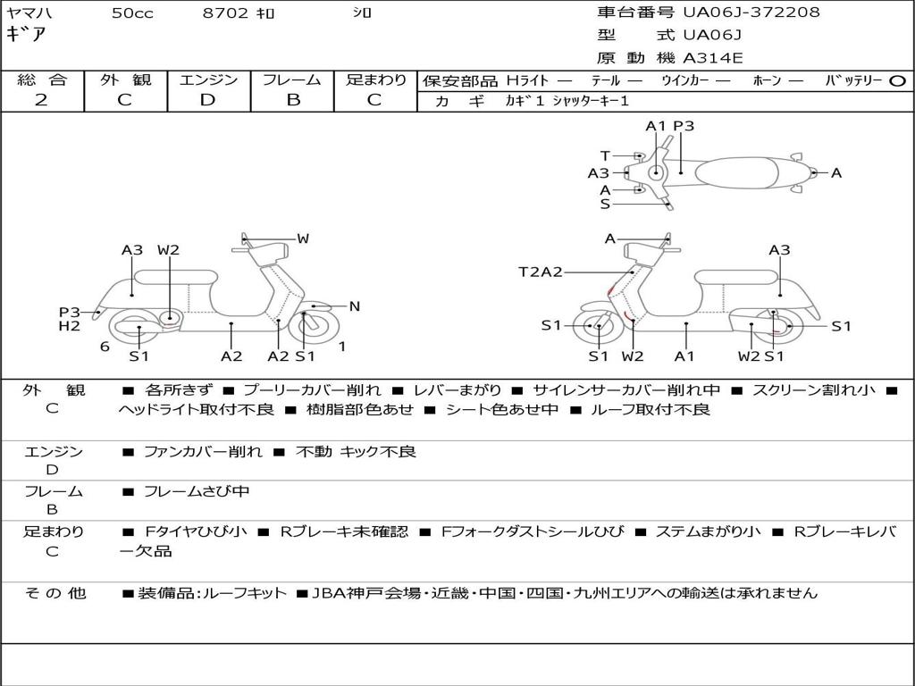 | Номер рамы / VIN | UA06J-372208 |