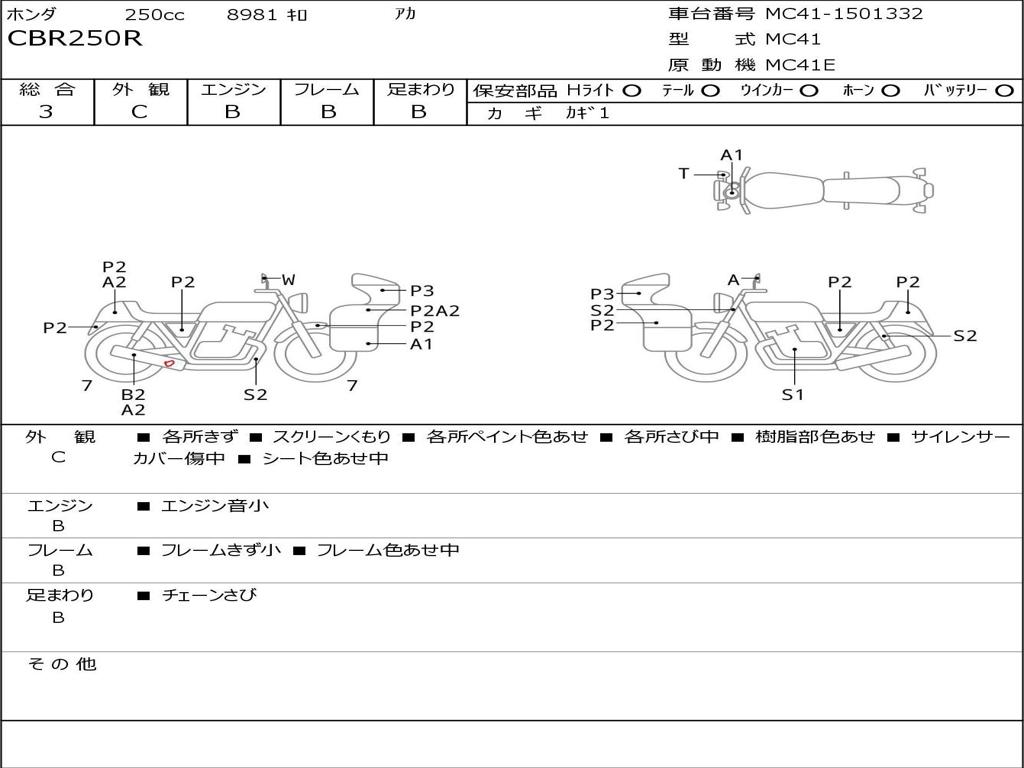 | Номер рамы / VIN | MC41-1501332 |