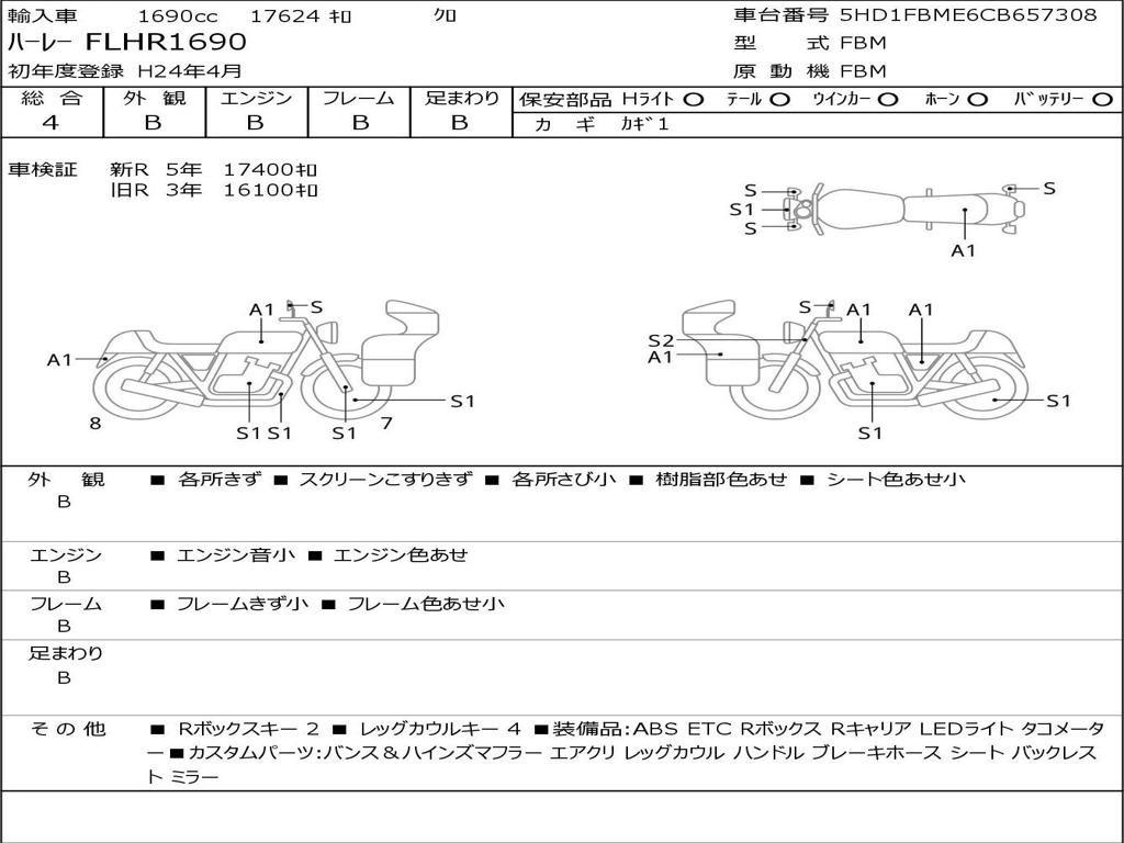| Номер рамы / VIN | 5HD1FBME6CB657308 |