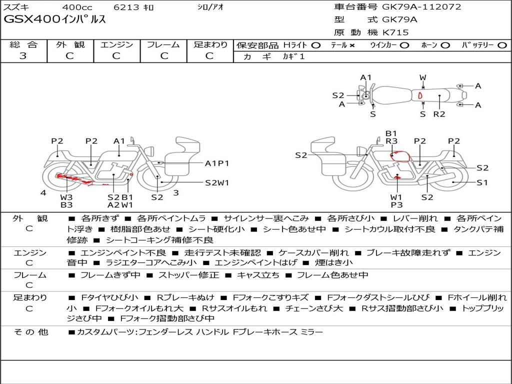 | Номер рамы / VIN | GK79A-112072 |