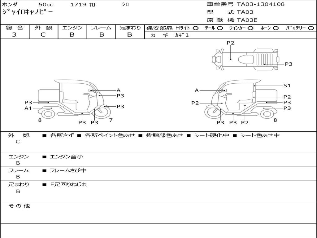 | Номер рамы / VIN | TA03-1304108 |