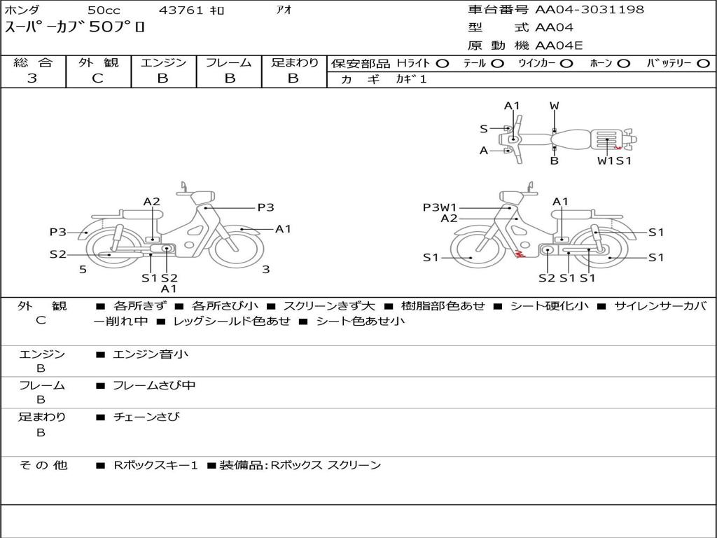 | Номер рамы / VIN | AA04-3031198 |