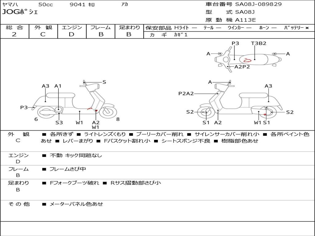 | Номер рамы / VIN | SA08J-089829 |