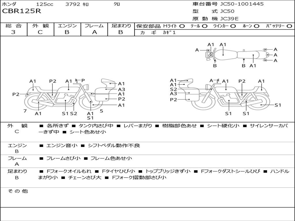 | Номер рамы / VIN | JC50-1001445 |