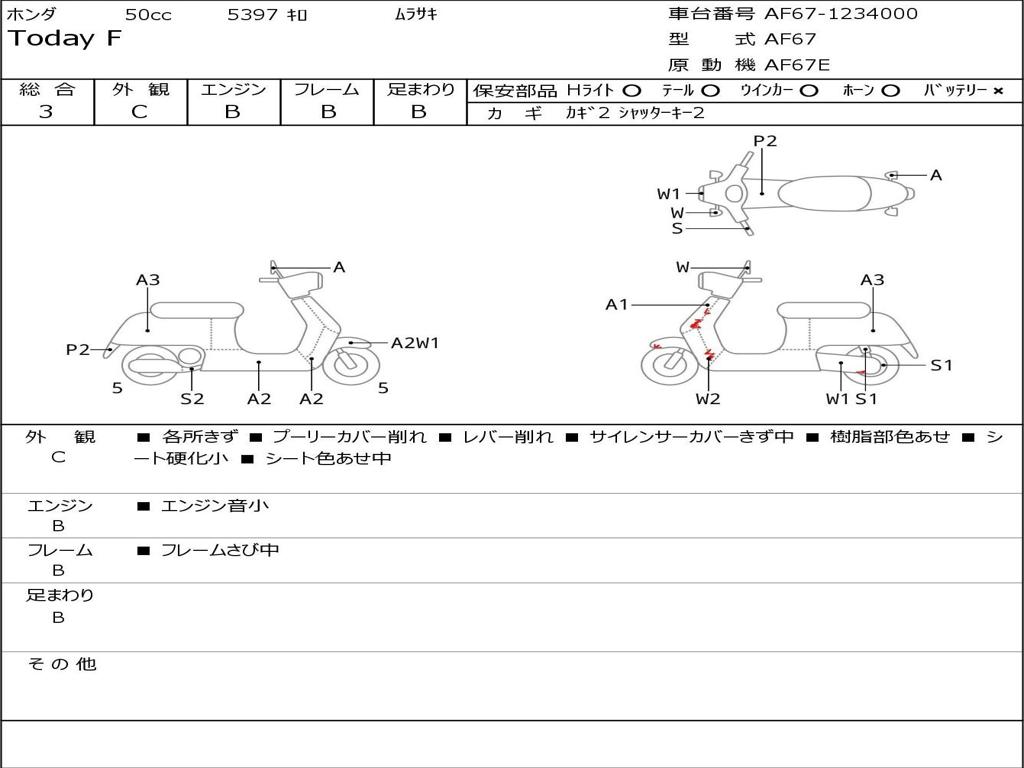 | Номер рамы / VIN | AF67-1234000 |
