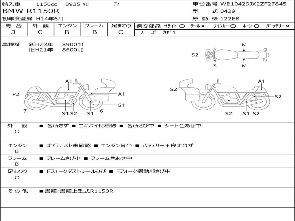 | Номер рамы / VIN | WB10429JX2ZF27845 |