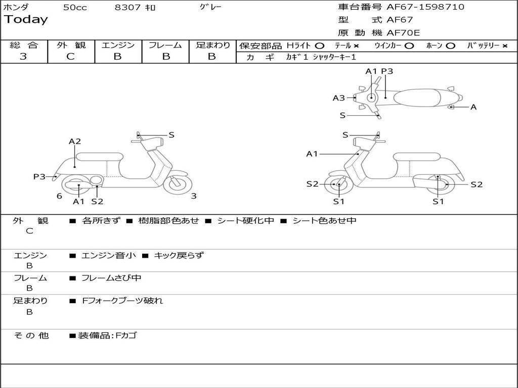 | Номер рамы / VIN | AF67-1598710 |