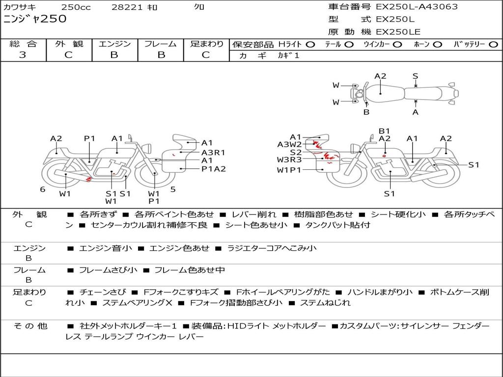 | Номер рамы / VIN | EX250L-A43063 |